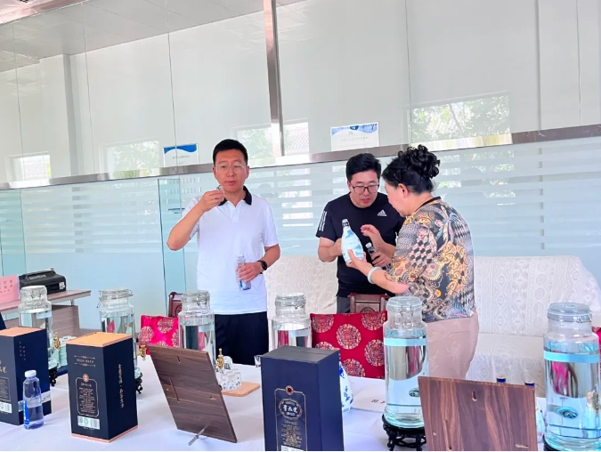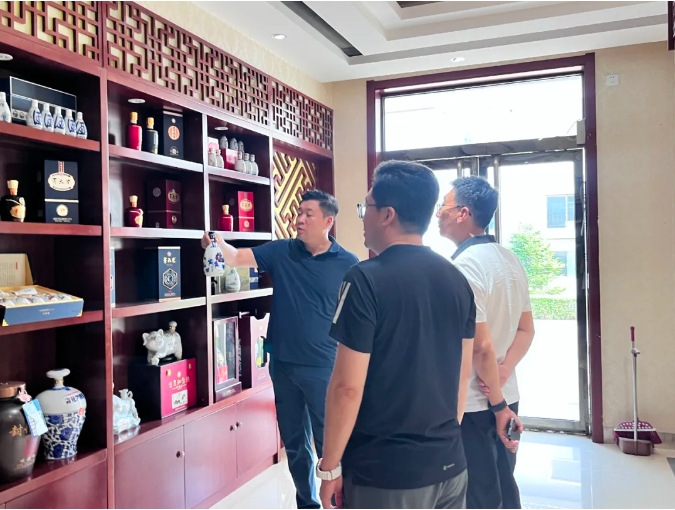 王總一行參觀了酒廠的釀造車間、儲(chǔ)存車間、勾調(diào)中心及文化長(zhǎng)廊等核心區(qū)域,他們深入了解了青花瓷酒獨(dú)特的古法釀造工藝、嚴(yán)格的質(zhì)量控制體系和深厚的品牌文化底蘊(yùn)。在勾調(diào)中心,山西青花瓷酒廠副總經(jīng)理、總工程師郝慧敏邀請(qǐng)大家現(xiàn)場(chǎng)品鑒多款青花瓷酒,并詳細(xì)介紹了核心爆品千里江山的釀造工藝和勾調(diào)標(biāo)準(zhǔn)。王總等品嘗后,對(duì)酒質(zhì)和口感給予了高度評(píng)價(jià),對(duì)品牌的品質(zhì)基礎(chǔ)表示了贊賞。