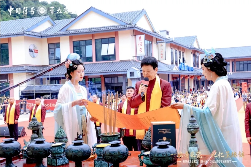 在景德鎮(zhèn),瓷器以匠人之手,雕琢出無瑕之美;在杏花村,青花瓷酒美酒以時光為媒,醞釀出醇厚之味,一瓷一酒,皆為匠心所鑄。2024年10月18日,青花瓷酒業(yè)集團第十屆封壇大典“一壇青花瓷·記憶景德鎮(zhèn)”于江西景德鎮(zhèn)隆重舉行。第十三屆全國政協(xié)副秘書長、中國藥學會副理事長曲鳳宏,中國食品工業(yè)協(xié)會副會長兼秘書長馬勇,景德鎮(zhèn)市政協(xié)副主席、農工黨市委會主委方靜,山西省汾陽市委常委、杏花村經(jīng)濟技術開發(fā)區(qū)黨工委書記、管委會主任韓學堯,景德鎮(zhèn)市人民政府黨組成員、昌南新區(qū)黨工委書記余立新,中國酒業(yè)酒類流通協(xié)會副秘書長趙禹,中國食品工業(yè)協(xié)會副秘書長楊強,山西省美術家協(xié)會主席王學輝 ,中國陶瓷藝術大師、正教授級高級工藝美術師、中國陶瓷大師聯(lián)盟副主席吳能,山西省美術家協(xié)會副主席、山西摩詰美術館館長高興璽,江西省陶瓷藝術大師、全國技術能手何勇,原河北中煙工業(yè)有限公司一級巡視員楊軍,原河北省廊坊市煙草專賣局黨組書記局長馬寶平,山西省政協(xié)委員、山西省黑龍江商會會長張士維,卓鵬戰(zhàn)略咨詢有限公司董事長田卓鵬,怡亞通集團大唐秘造品牌及大唐酒業(yè)副總裁王慶福,華祥苑茶業(yè)股份有限公司執(zhí)行總經(jīng)理李支華,青花瓷品牌創(chuàng)始人朱德寧,山西省政協(xié)委員、青花瓷酒業(yè)集團董事長朱明等領導以及百度、新華社、鳳凰網(wǎng)、騰訊視頻、新浪新聞、云酒頭條的媒體朋友、全國各地重點經(jīng)銷商等近1000余人共同見證了這一盛典。