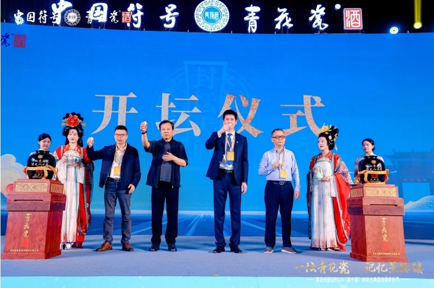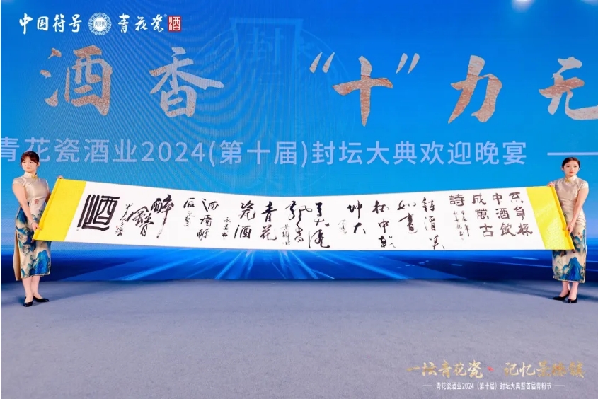 緊接著,激動(dòng)人心的十年封壇酒開壇儀式隆重舉行。在現(xiàn)場嘉賓的共同見證下,由中國食品工業(yè)協(xié)會(huì)副秘書長楊強(qiáng)、山西省美術(shù)家協(xié)會(huì)副主席、山西摩詰美術(shù)館館長高興璽、華祥苑茶業(yè)股份有限公司執(zhí)行總經(jīng)理李支華、青花瓷酒業(yè)集團(tuán)董事長朱明四位領(lǐng)導(dǎo)親手揭開了封存已久的酒壇,頓時(shí)酒香四溢,沁人心脾。
