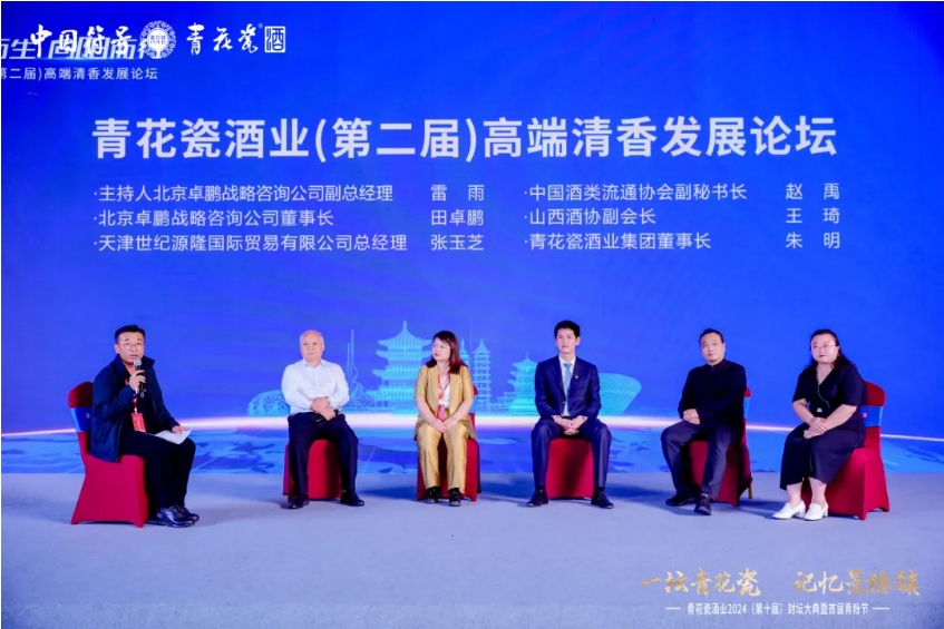 在隨后的論壇環(huán)節(jié)中,由北京卓鵬戰(zhàn)略咨詢公司副總經(jīng)理雷雨擔(dān)任主持人,邀請中國酒業(yè)酒類流通協(xié)會副秘書長趙禹、卓鵬戰(zhàn)略咨詢有限公司董事長田卓鵬、山西省酒業(yè)商會專職副會長王琦、天津世紀(jì)源隆國際貿(mào)易有限公司總經(jīng)理張玉芝、青花瓷酒業(yè)集團(tuán)董事長朱明圍繞清香白酒的市場趨勢、品牌建設(shè)、營銷策略等議題展開了深入交流與探討,大家各抒己見、暢所欲言,為與會嘉賓帶來了一場思想盛宴。