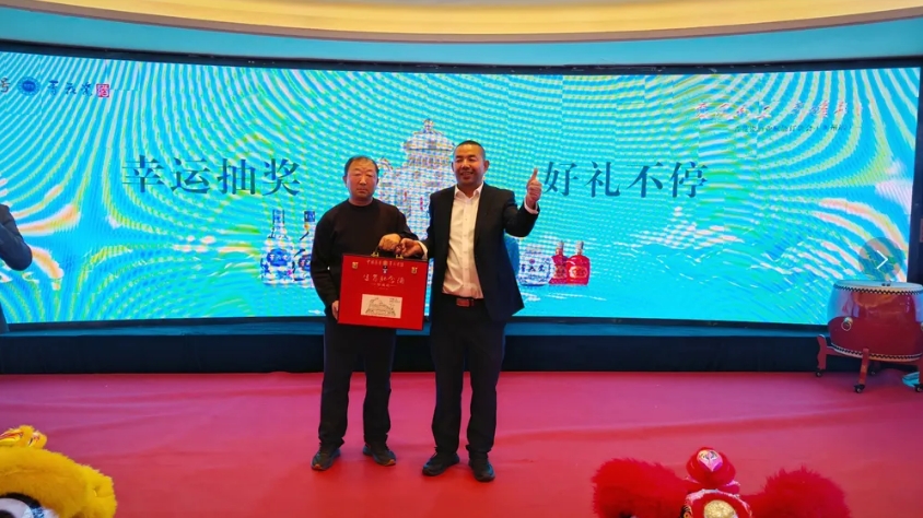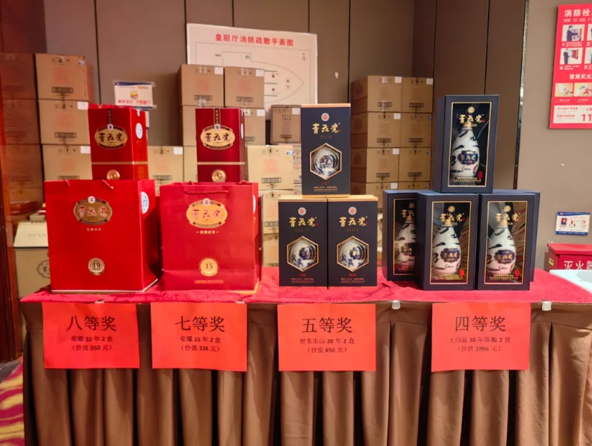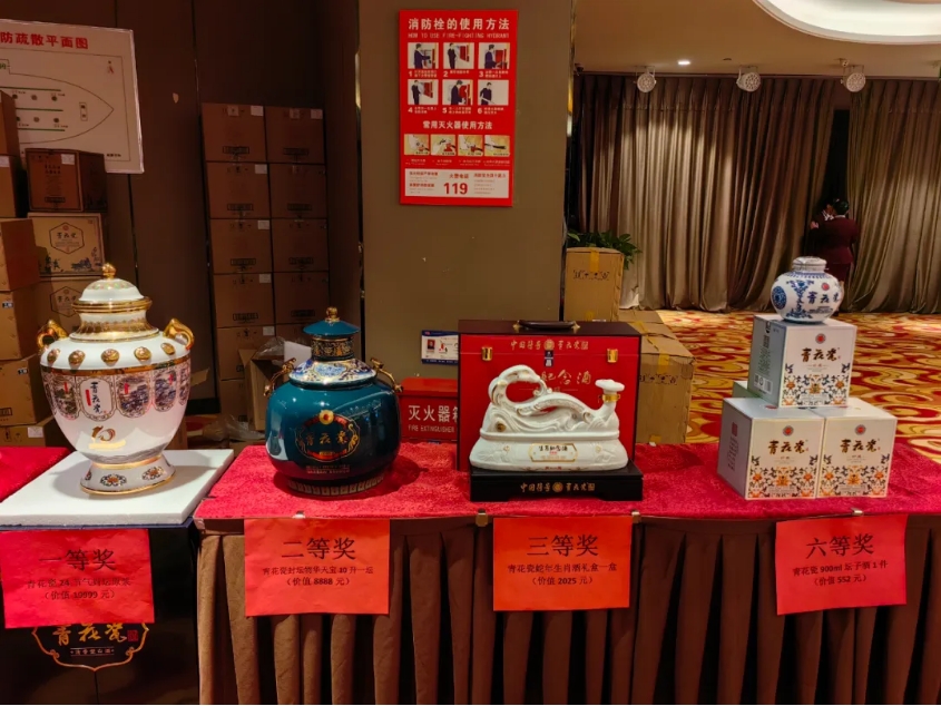 訂貨會現(xiàn)場氣氛熱烈,展示區(qū)內(nèi)陳列著青花瓷酒的各類主推產(chǎn)品,封壇十周年定制酒二十四節(jié)氣、物華天寶、生肖酒、智圣出山、千里江山、青花壇酒10等,精美的包裝設(shè)計和充滿文化意蘊(yùn)的整體風(fēng)格,吸引了眾多與會者駐足欣賞。晚宴現(xiàn)場,伴隨著精彩的節(jié)目助興和現(xiàn)場抽獎,大家觥籌交錯此起彼伏,沉浸在青花瓷的酒香之中。
