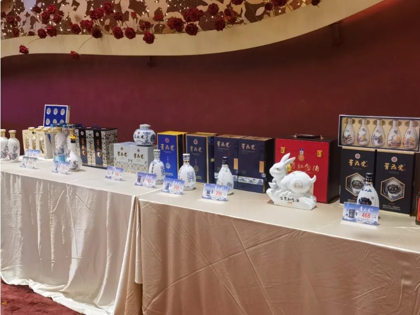 訂貨會現場燈光璀璨,精彩紛呈,伴隨著歡快的音樂,大幕徐徐拉開。精心布置的展區(qū)中,十余款青花瓷美酒錯落有致,吸引了眾多經銷商的目光。