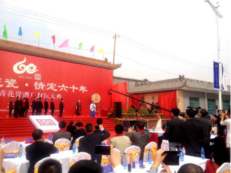 汾陽(yáng)市市長(zhǎng)李玉林、北京青花瓷酒業(yè)董事長(zhǎng)朱明、山西青花瓷酒廠總經(jīng)理郭環(huán)成、北京青花瓷酒業(yè)總經(jīng)理夏紅燦、山西青花瓷酒業(yè)總經(jīng)理朱明橋等領(lǐng)導(dǎo)分別在慶典大會(huì)上發(fā)言,共同回顧了山西青花瓷酒廠60年來(lái)的發(fā)展歷程和所取得的輝煌成績(jī),并為青花瓷酒首屆封壇大典揭幕。