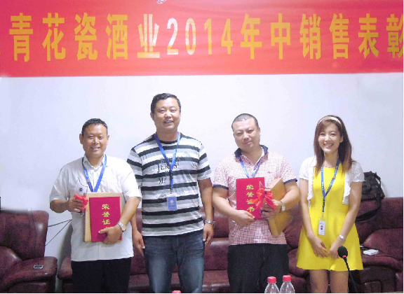 7月17日下午,北京青花瓷酒業(yè)2014年中銷售表彰會在安徽青花瓷酒業(yè)有限責(zé)任公司二樓會議室舉行。北京青花瓷酒業(yè)股份有限公司、安徽青花瓷酒業(yè)有限責(zé)任公司高層領(lǐng)導(dǎo)、全國省級經(jīng)理及各區(qū)域經(jīng)理齊聚一堂,總結(jié)上半年銷售及管理工作的得與失,對銷售業(yè)績突出的團(tuán)隊(duì)和個人進(jìn)行榮譽(yù)表彰,同時就下半年銷售工作安排進(jìn)行規(guī)劃部署。會議由北京青花瓷酒業(yè)市場部經(jīng)理劉怡主持。