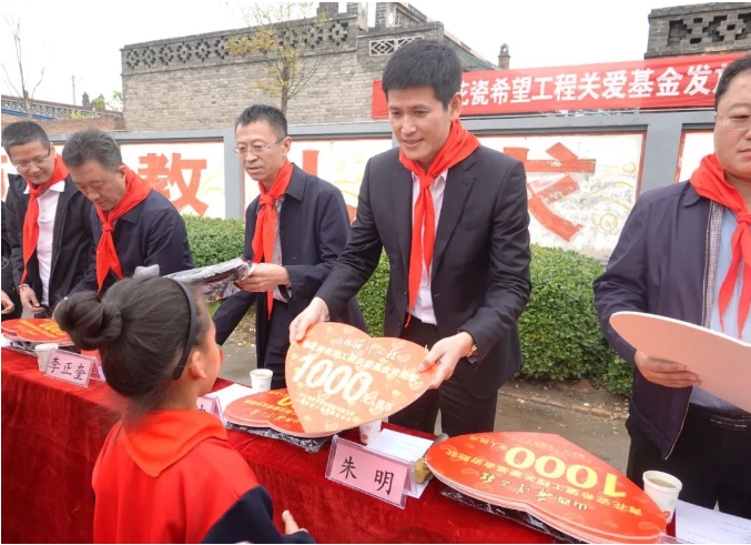 農(nóng)工黨中央青年工作委員會(huì)委員、青花瓷酒業(yè)集團(tuán)董事長(zhǎng)朱明、總經(jīng)理朱明橋向山西青基會(huì)捐贈(zèng)物資及現(xiàn)金共計(jì)138000元。青花瓷希望工程關(guān)愛(ài)基金向貧困學(xué)生發(fā)放學(xué)習(xí)用品,并捐贈(zèng)書本、體育用品、餐盒、200余套服裝等愛(ài)心物資。同時(shí)還為該校30余名“建檔立卡”的貧困家庭學(xué)生每人發(fā)放了1000元助學(xué)基金。 朱明董事長(zhǎng)親自為孩子們發(fā)放愛(ài)心衣物、學(xué)習(xí)用品,勉勵(lì)受資助的學(xué)生正視困難,堅(jiān)持自強(qiáng)不息,把困難當(dāng)作砥礪意志的磨刀石,努力學(xué)習(xí),成長(zhǎng)為對(duì)社會(huì)有貢獻(xiàn)的優(yōu)秀人才。