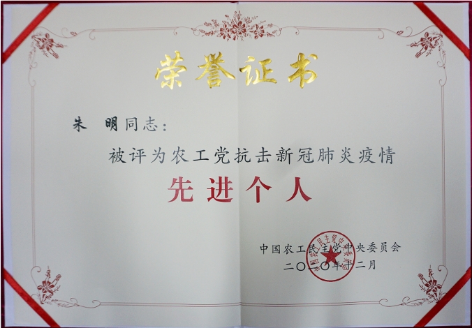 朱明董事長在抗擊新冠肺炎疫情時起到了模范帶頭作用,作為農(nóng)工黨員,以實際行動詮釋了農(nóng)工黨員作為共產(chǎn)黨員親密伙伴的責(zé)任擔(dān)當(dāng)與行動自覺,在抗疫大考中交出了合格答卷。