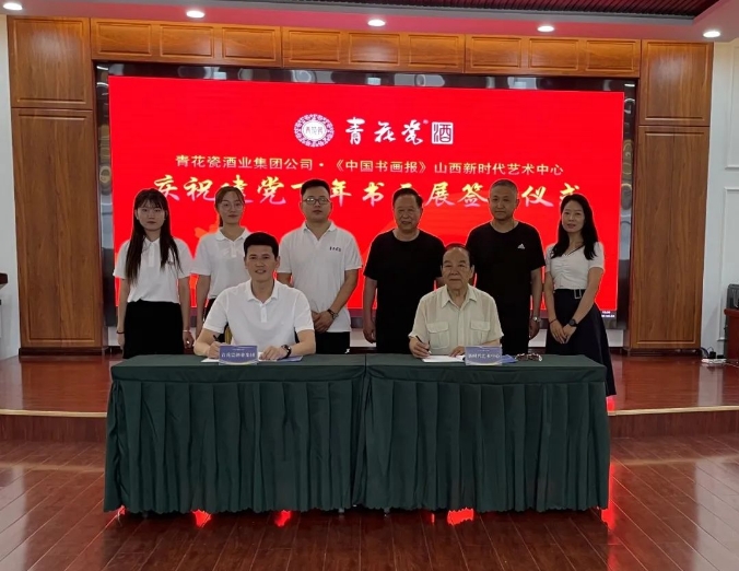 為慶祝中國共產(chǎn)黨百年華誕,歌頌黨的百年歷程和豐功偉績,宣傳青花瓷酒企文化,由青花瓷酒業(yè)集團(tuán)主辦、《中國書畫報(bào)》山西新時(shí)代藝術(shù)中心承辦的“追夢(mèng)新時(shí)代 永遠(yuǎn)跟黨走——青花瓷酒業(yè)集團(tuán)紀(jì)念建黨100周年書畫展”簽約儀式,于2021年6月24日在杏花村青花瓷酒廠舉行。