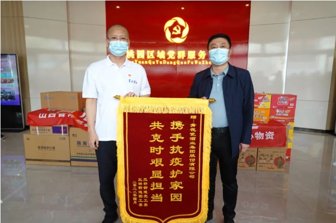 三橋街道黨工委書記王鵬對青花瓷酒業(yè)集團的愛心捐助表示衷心的感謝,并向青花瓷酒業(yè)集團贈送“攜手抗疫護家園,共克時艱顯擔當”錦旗。他表示,愛心企業(yè)的捐贈行為,給予的不僅是抗擊疫情物質(zhì)上的支持,更重要的是精神上的鼓舞。你們的關(guān)愛溫暖了每一位堅守抗疫一線的“逆行者”,增強了街道上下一心、眾志成城戰(zhàn)勝疫情的決心和信心。我們將繼續(xù)全力以赴扎實做好各項防疫工作,與社會各界齊心協(xié)力、眾志成城,堅決打贏疫情防控阻擊戰(zhàn)。