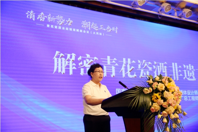 山西青花瓷酒廠總工程師郝慧敏向大家分享了白酒釀造調(diào)制的歷史和發(fā)展現(xiàn)狀,現(xiàn)場(chǎng)解密青花瓷酒非遺古法工藝,大家在她的講解中,緩緩走進(jìn)青花瓷酒產(chǎn)品高品質(zhì)的背后奧妙。