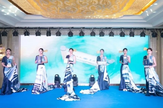 除此外,在臺上燈光的映襯下,身著靚麗服裝的模特以走秀形式向來賓展示了青花瓷酒新品國韻、原漿20、M26