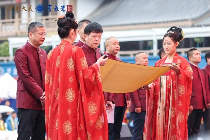 青花瓷酒業(yè)集團第九屆封壇大典“一壇青花瓷·舉杯共長安”在一場鏗鏘有力的《鼓舞中華》表演中拉開了帷幕,陣陣鼓聲激勵著前行的步伐,瞬間點燃了現(xiàn)場氛圍。此次封壇大典繼承傳統(tǒng)禮儀,祭祀人員感恩天地、祭拜酒神,祈愿國泰民安、百業(yè)昌隆。這不僅是對中國傳統(tǒng)文化的繼承和發(fā)揚,也展現(xiàn)出青花瓷人對白酒傳統(tǒng)工藝、優(yōu)良品質(zhì)、品牌自信的傳承。